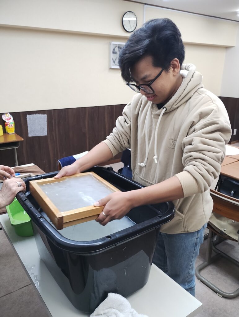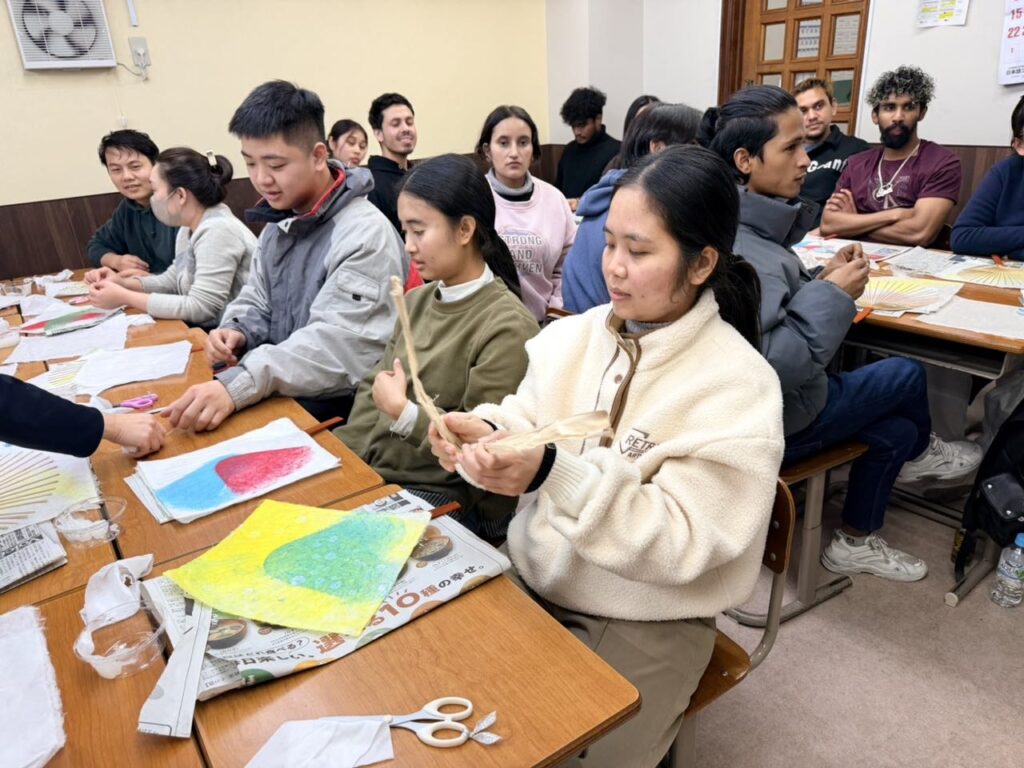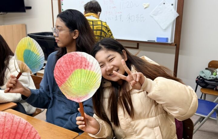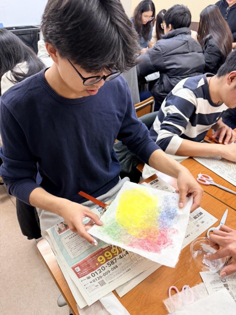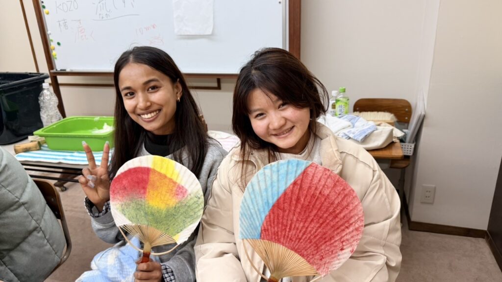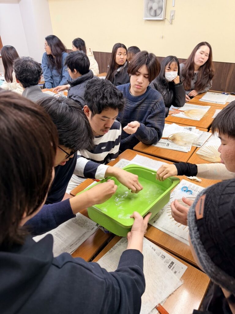 伝統的な和紙製造を体験できる「紙漉き」文化体験授業を行いました。最後は自分オリジナル団扇を作って持ち帰りました。