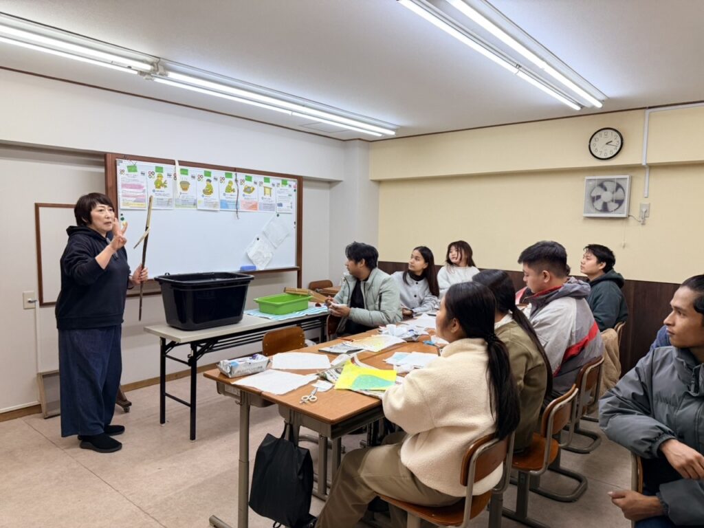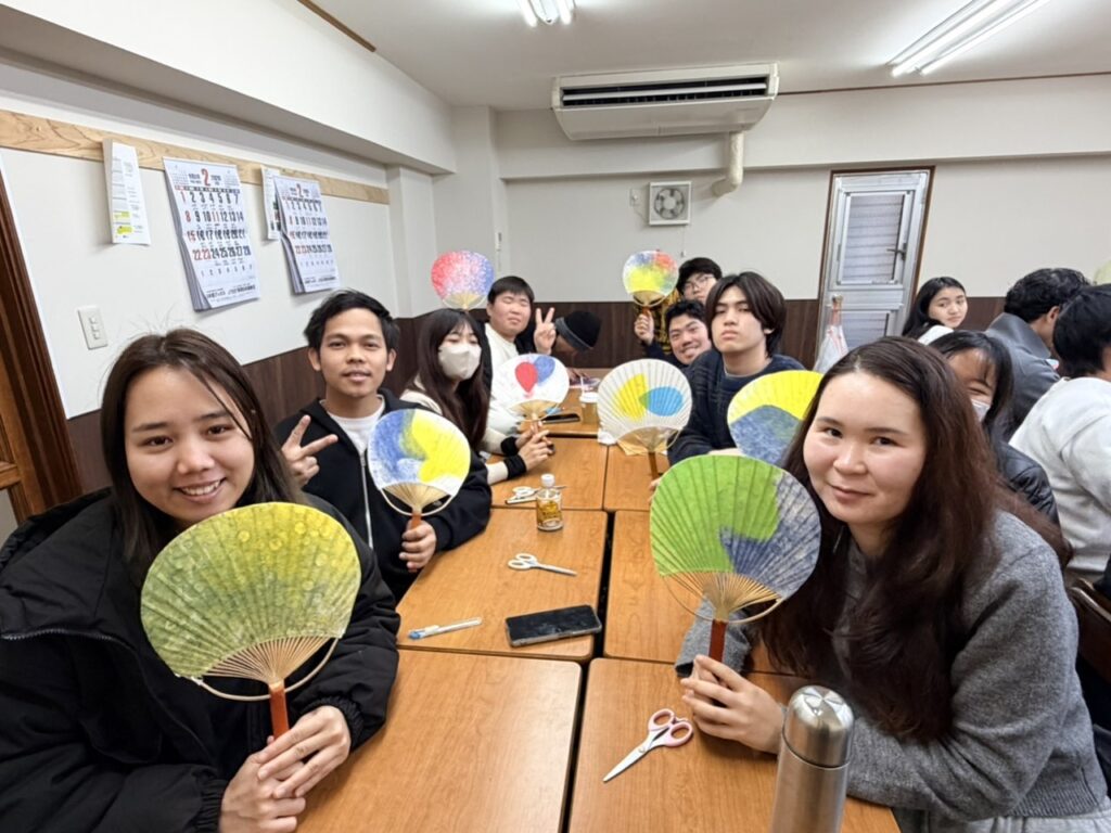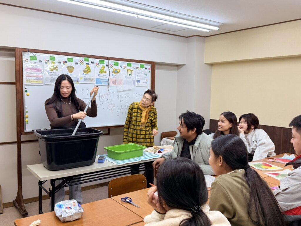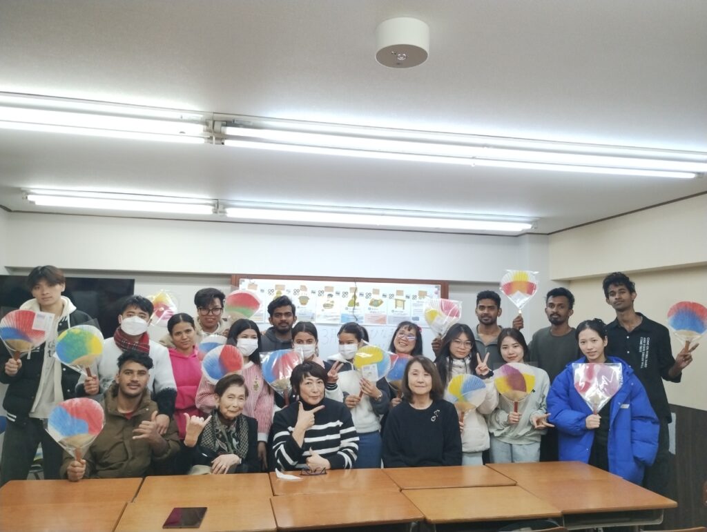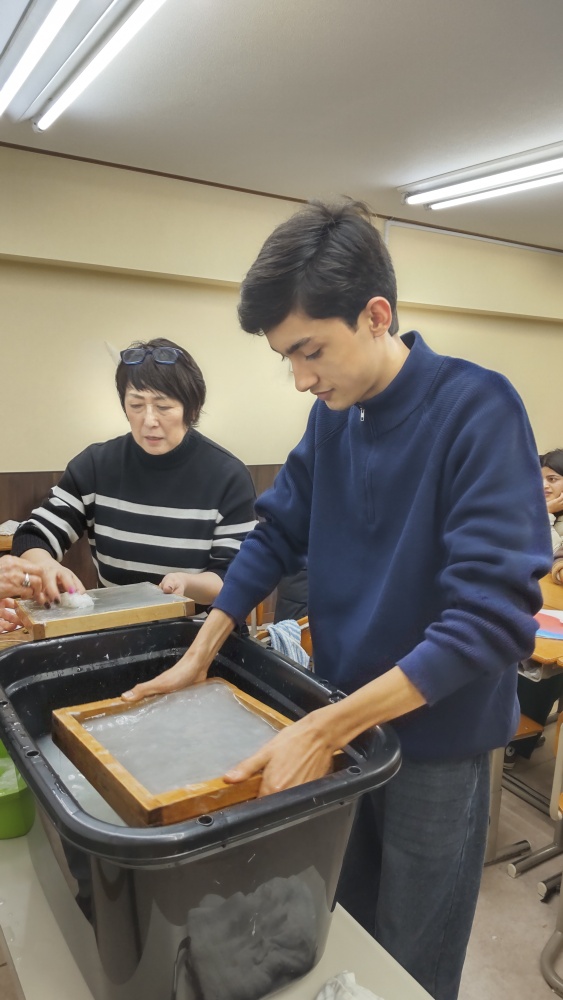 伝統的な和紙製造を体験できる「紙漉き」文化体験授業を行いました。最後は自分オリジナル団扇を作って持ち帰りました。